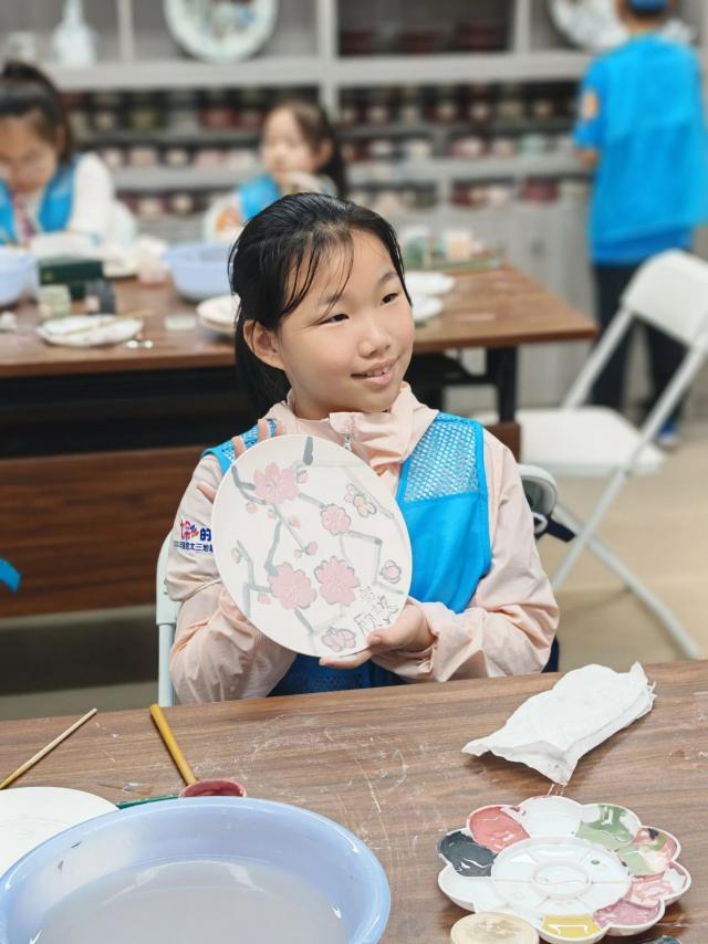 随后,在北虹桥艺术馆,他们体验了“诗韵瓷画”活动。每个人都用诗歌作为“引言”,用细笔轻轻蘸上瓷釉,巧妙地将诗歌的美与陶艺的魅力结合起来,感受中华传统文化的独特魅力。