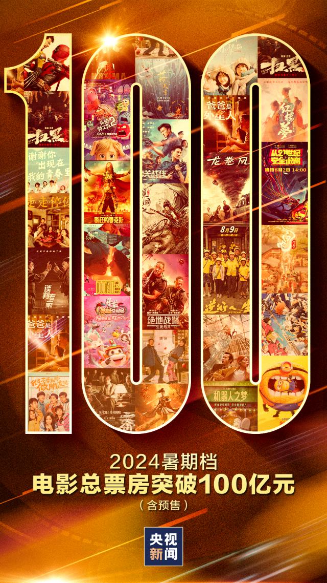 根据网络平台的实时动态,截至 17 日 23 时 25 分,2024 年暑期档(6 月— 8 月度档期总票房(包括预购)突破 100 亿元。