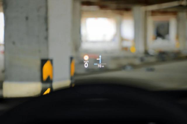 我们拍摄的高配版本也有 HUD 抬头显示,清晰度相当高,配合可提供 AR 全液晶导航仪表盘,驾驶员可以得到很好的车辆,实时路况,这一点值得称赞。