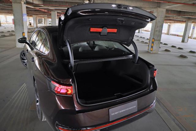 打开后备箱,可以看到新迈腾留给行李的空间也很大,估计可以放下。 4 个 20 寸旅行箱,后排座椅放下后,还有更多的空间可以使用。