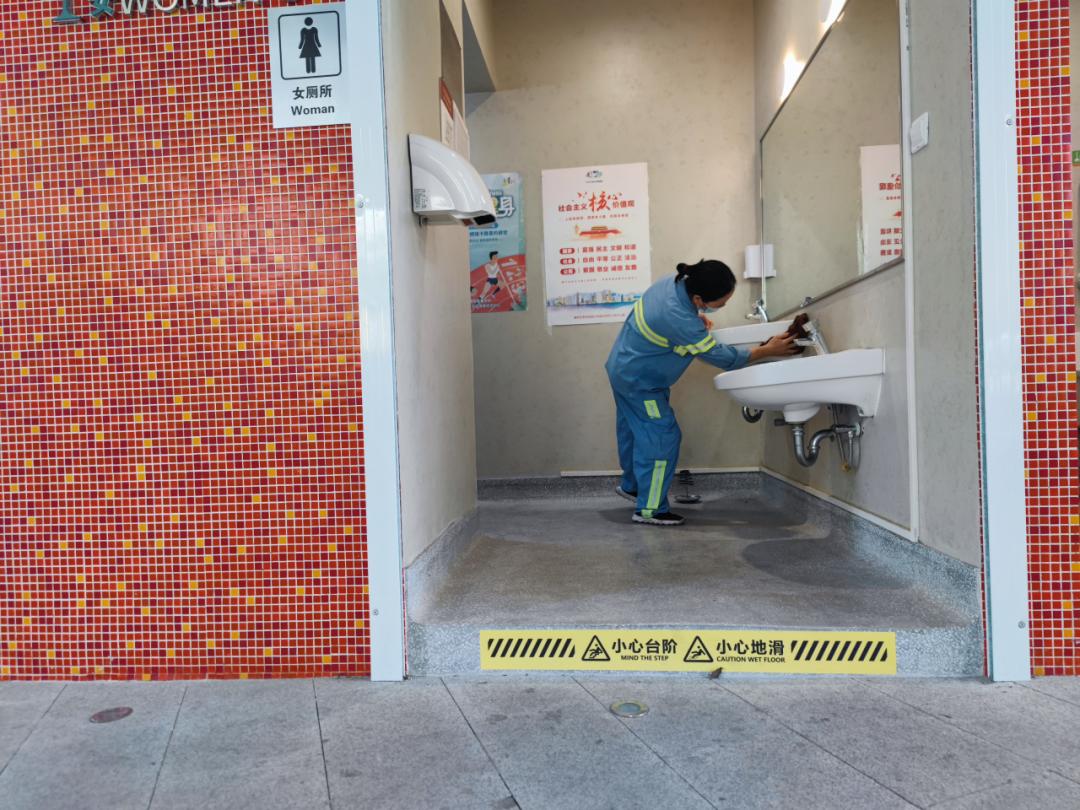 落实“三时”清洁标准,以专人专岗的管理模式进行日常清洁,即“每天开关门时间进行一次系统清洁,每2小时进行一次全面清洁,市民上厕所后及时清洁”。提高“三化”贴心服务,为市民提供调整更换照明设施、在公厕门口安装监控装置、提供创可贴等常用应急物资等更人性化、优质化、精细化服务。