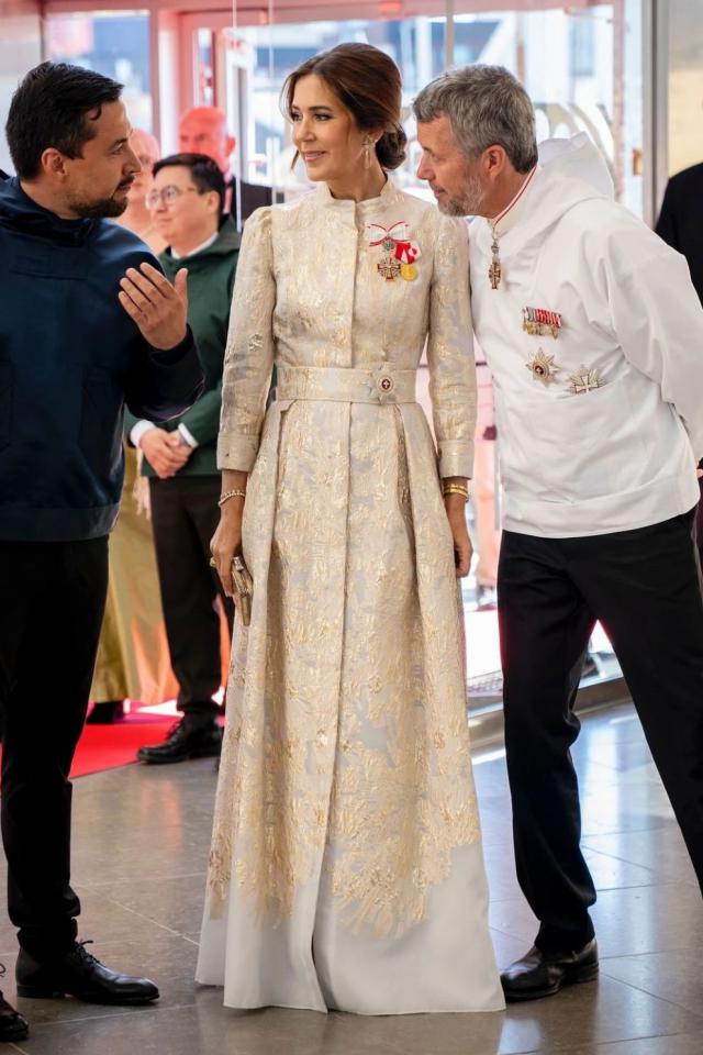 玛丽作为丹麦皇室最忠实的拖地连衣裙爱好者,近年来穿着各种款式的连衣裙。尽管她已经出生了 4 一个小孩,年过 50,依然可以通过长裙的收腰设计,营造出轻盈优雅的感觉。编辑通常会强调“找到合理的腰线位置”,腰线位置会决定你的腿长从哪里开始分割。