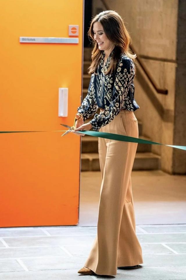 可是在皇室里摸爬滚打 20 2000年后,玛丽现在被公认为优雅的标杆。她最喜欢穿和最知名的衣服是一件切割精良的丝织衬衫。 下垂感很好的阔脚裤 尖头高跟鞋,玛丽出门几乎有60%的造型都是这样穿的,说明她和造型师都很喜欢这种搭配。天气转凉后,加一套修身笔挺的小西装来应对温度变化。