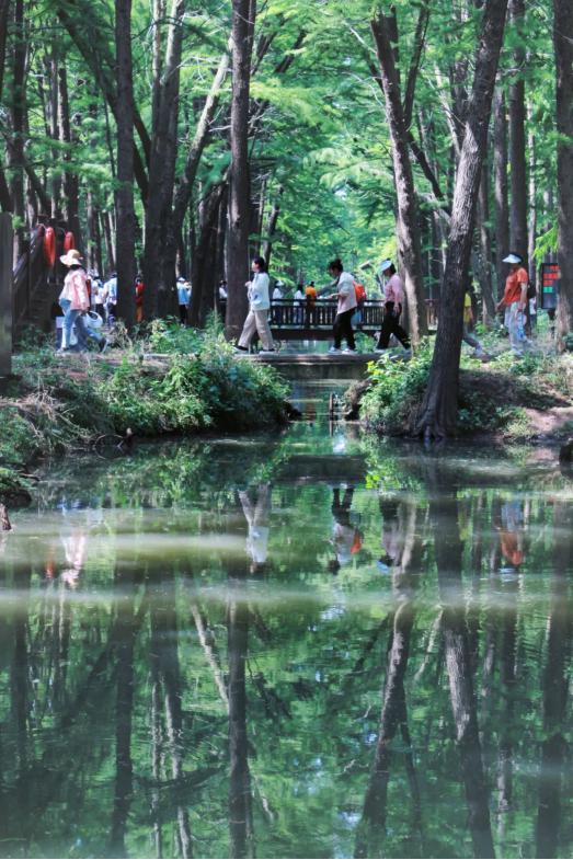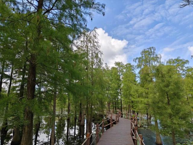 池杉湖湿地公园以其独特的湿地景观和丰富的生态资源吸引了许多游客。夏天,池杉林郁郁葱葱,与广阔的水面相得益彰。乘坐观光船穿梭于湿地,不仅可以看到苍蝇飞翔的壮观景象,还可以近距离接触各种水生生物,感受大自然的和谐共生。