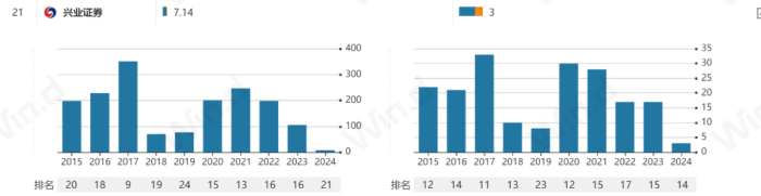 机构服务业务重点包括投行业务。据Wind数据显示,2023年,兴业证券股权承销金额104.94亿元,排在第16位;承销家数17家,排在第15位。但2024年以来,兴业证券股权承销金额仅7.14亿元,排在第21位;承销家数3家,排在第14位。
