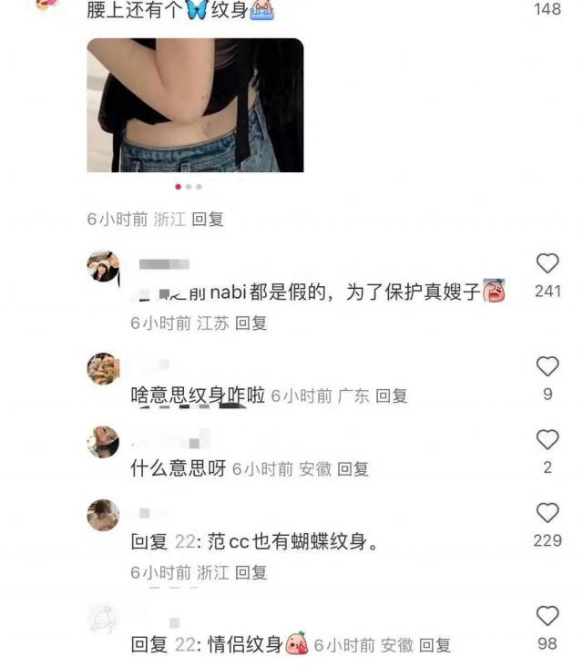 以前人们猜测身上的纹身与欧阳娜娜有染。因为韩文蝴蝶的发音就是 nabi。之前有人怀疑事情爆发了,对她的粉丝影响很大。现在,网友们终于解决了误会,发现了他现在的女朋友露露,身上有蝴蝶纹身。