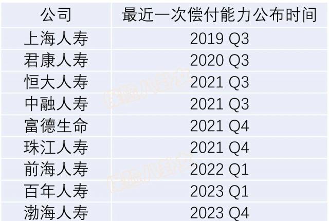 另外,以下几家公司已经很久没有公布偿付能力报告: