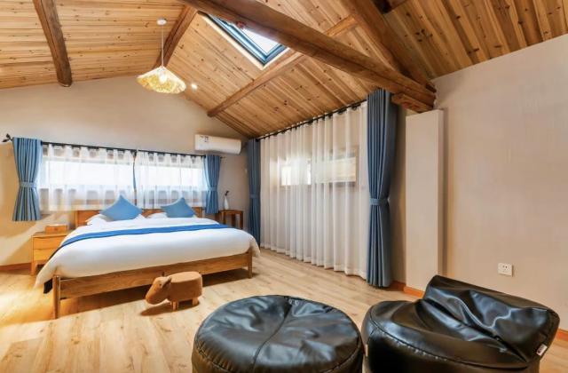 位于余姚市中村。 论意山野, 窗外是青山,窗内是温柔的梦。即使躺一天不出门,也能被日升月落的风景所丰富,真正实现一室一景,一窗一世界。