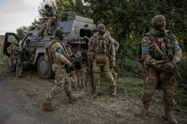 ▲ 8 月 16 日本,乌克兰军人聚集在苏梅地区。(美联社)