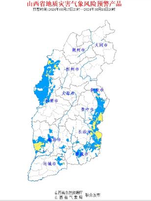 2024年8月17日17时05分,山西省自然资源厅和山西省气象局联合发布地质灾害气象风险预警:受强降水影响,预计2024年8月17日20时至18日20时,阳泉郊区、平定县;长治市六城区、平顺县、黎城县、壶关县、武乡县;晋中市左权县、和顺县、昔阳县;运城市垣曲县;忻州市五寨县、岚县、河曲县、保德县;临汾市吉县、乡宁县;吕梁市离石区、兴县、临县等地区部分地区地质灾害气象风险预警等级为三级黄色,具有较高的地质灾害气象风险。请有关部门做好地质灾害防治工作。