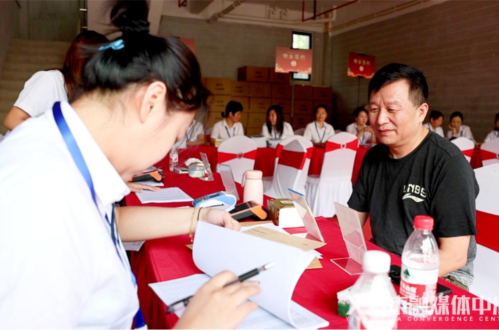 二三里街道商江花园北门交付现场,很多业主一大早就赶到办理房屋交付手续。在工作人员的指导和帮助下,协议签订、支付、水电处理等事项“一站式”完成。