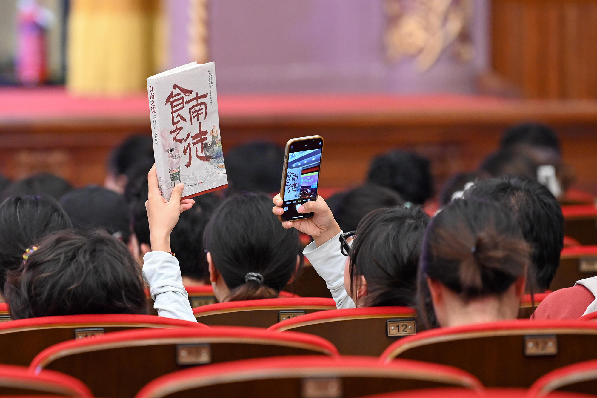 2024年8月17日,在上海博览中心,读者与马伯庸的《食南之徒》合影。本报记者 朱伟辉 图