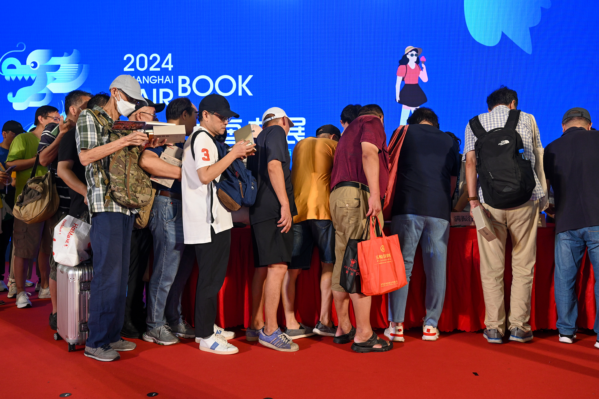 2024年8月17日,在上海博览中心,读者们带着马伯庸的《食南之徒》排队等候。本报记者 朱伟辉 图