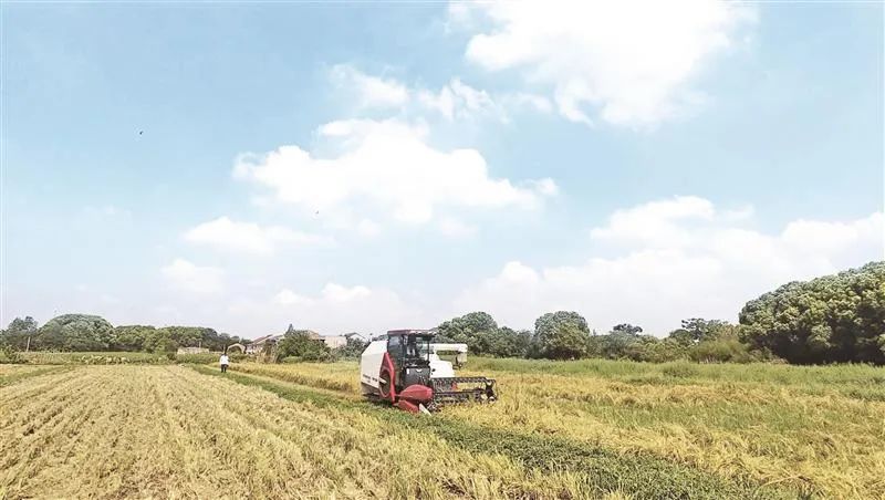 昨天上午,在新吴区鸿山街道由心农业科技发展有限公司的稻谷基地,金色的稻浪涌动,一台“轰隆隆”的收割机穿过其间,将一排排稻谷“吃”进肚子里。市农业农村局人士表示:“这是我市今年水稻收割的第一个镰刀。第一批收割面积80亩,亩均产量400斤,比预期增长20%。