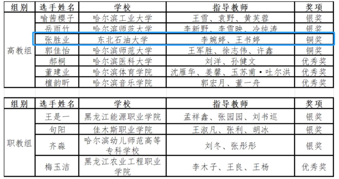 其中,黑龙江11名选手获得成长跑道奖;10名选手获得就业跑道奖;4名选手获得大学生职业发展和就业指导课程教学赛道奖;一所大学获得优秀组织奖。