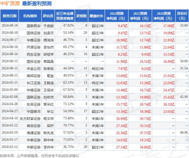 曾朵红东吴证券有限公司 , 阮巧燕 , 岳斯瑶 , 近日,胡锦芸对中矿资源进行了研究,并发布了《2024》调查报告 年度报告评论:Q2 汇兑影响减弱,单吨成本大幅下降。本报告对中矿资源进行了买入评级,目前股价为 27.14 元。