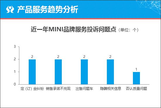 从服务投诉的角度来看,投诉的问题都是个位分散的,不排除个案的可能性。通过进一步分析,我们可以看到上述服务问题大多来自 MINI 车型。