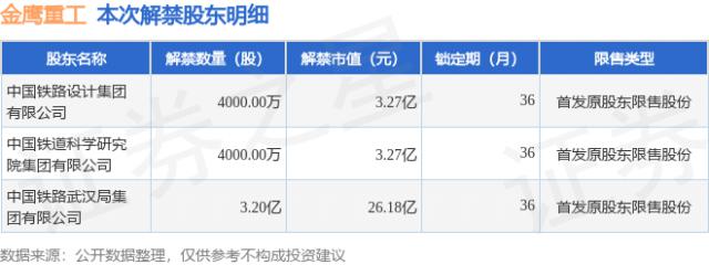 根据市场公开信息整理证券之星消息,金鹰重工(301048)于 8 月 19 日将有 4.0 解禁一亿股限售股份,为公司首发原股东限售股份,占公司总股本。 75.0%的数据是根据历史公告整理的。 , 具体情况以上市公司最新公告为准)解禁后,公司已无限期出售股份。如图所示: