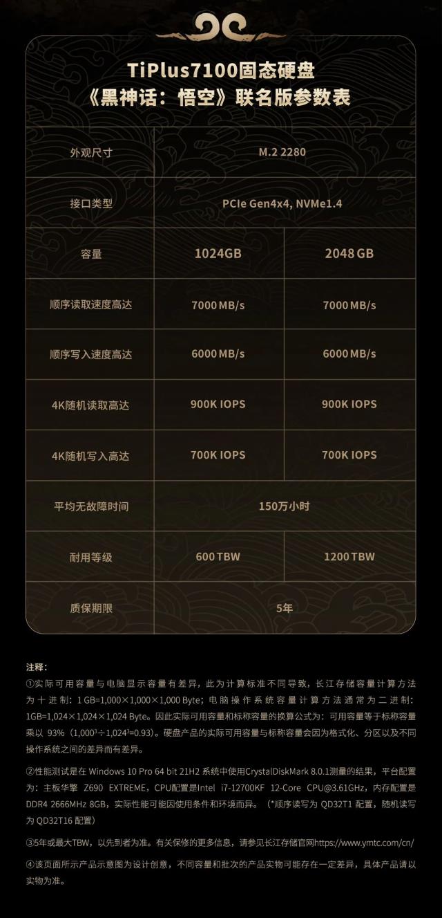 致态 TiPlus 7100 “黑神话:悟空”固态盘联名版开售