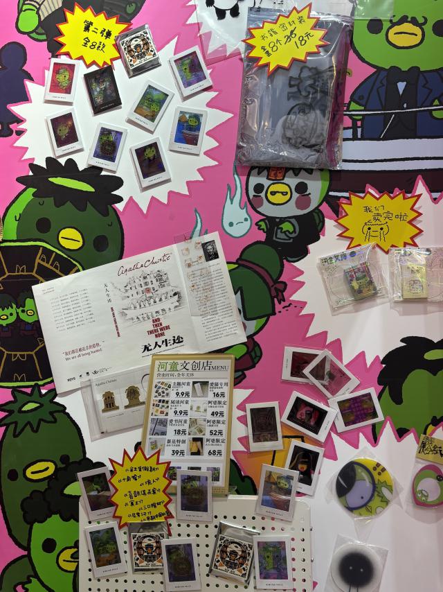新星出版社的“河童文创店”鬼马精灵,让人摸不着头脑,几乎所有的产品都是用一个绿色的卡通河童形象来描述的。营销编辑何诗琪告诉记者,新星出版社的野生吉祥物河童是日本民间传说中的怪物,而新星出版社最初以日本推理小说为公众所知。起初,这个卡通河童的形象是一个同事画的。因其活泼可爱,被用于出版社官方微信官方账号头像,意外受到很多读者的喜爱。出版社要求设计师丰富河童的故事,衍生出一系列文化创作。书展现场,迷你书冰箱贴纸和河童光影胶片卡是首批售空品类。前者把想象世界的书变成了“出版”的迷你冰箱贴纸,每一页都有剧情,真的可以看;后者是河童形象和新星书的结合。每本书都代表一本书,盲袋出售,增加了隐藏的资金。