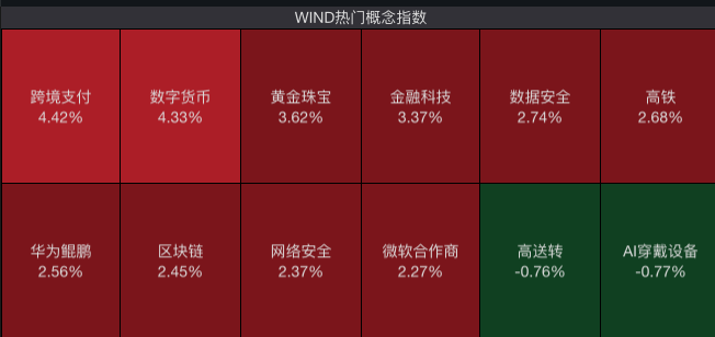 个股方面,跨境支付概念开盘走高。截至发稿时,北京、北方、四方精创涨停,华峰超纤涨幅超过11%,高伟达、易点世界、仁东控股涨幅居前。