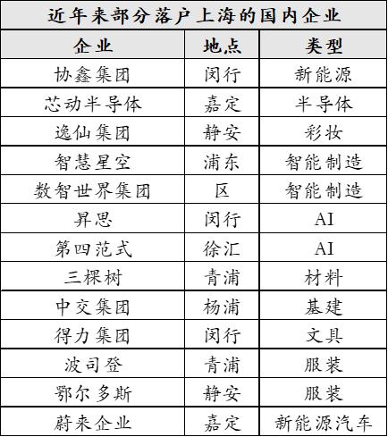 在上海落户的国内企业主要是新能源、新能源汽车、半导体、智能制造、AI等新兴产品。
