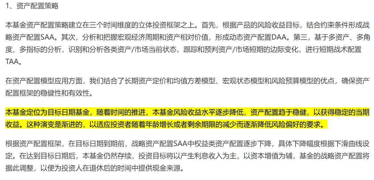 2040年持有期混合基金的博时养老目标日期(FOF)比如在基金合同中,凤凰。com财经《投资观察》发现,投资策略中有一句话,“基金定位为目标日期基金。随着时间的推移,基金的风险收益水平逐渐下降,理财规划趋于稳定,以获得稳定的当期收益。为了满足投资者随年龄增长或剩余期限减少而逐步降低风险偏好的要求,这种进化是渐进的。”