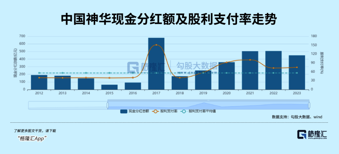 自2020年低点以来,煤电之王中国神华a股除权股价最高涨幅超过2倍。在此期间,每股累计分红9.16元,近四年分红率达到10.05%。、11.28%、9.23%、7.21%。