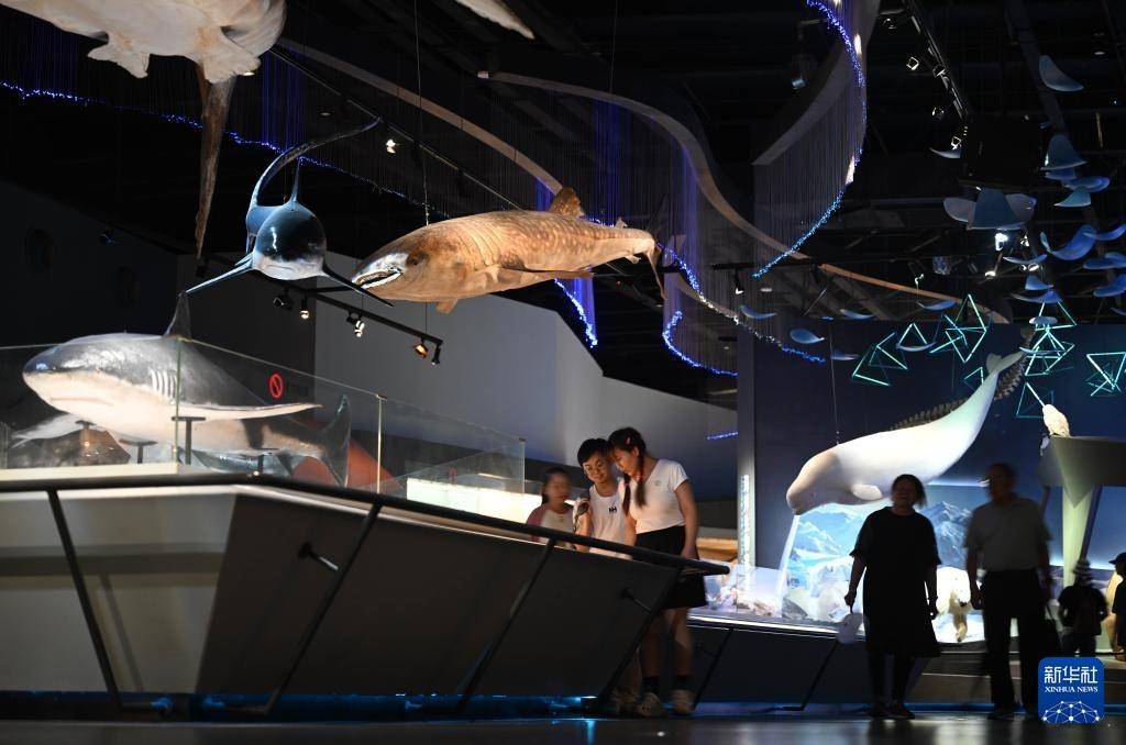 八月十七日,游客们参观了国家海洋博物馆。新华社记者 赵子硕 摄
