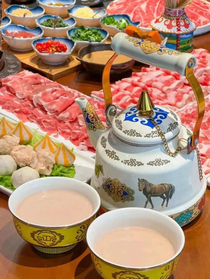 在大多数城市,奶茶可以是甜的,而内蒙古的奶茶是咸的!在茶汤中加入自挤牛奶,加入一些炒饭、奶油和黄油,这是游牧民族的奶茶。醇厚的奶香味略咸。