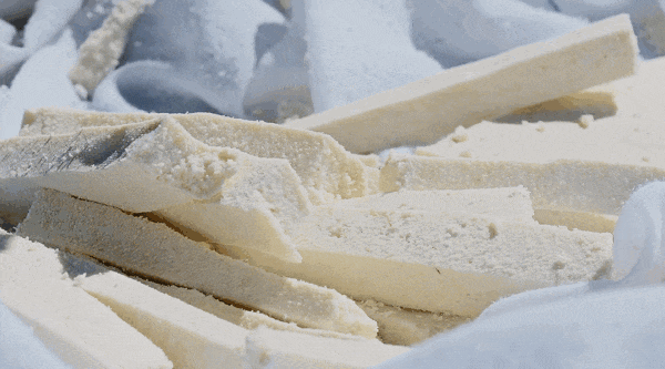 奶渣可以做成奶豆腐,用重物挤压成型,然后风干静止。会有乳白色的奶豆腐,十几斤鲜奶会有一斤奶豆腐,可以算是牛奶的精华。