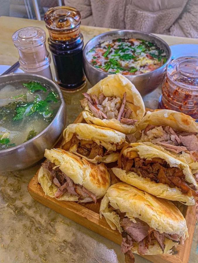 内蒙古也有自己的“夹肉汉堡”,就是赤峰对夹,把酥脆的烧饼当皮,夹在熏猪肉里,表皮金黄,充满焦香,熏肉紧实,嚼起来越来越香。