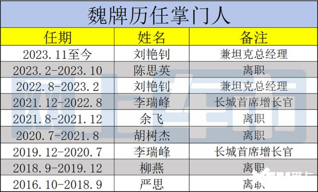 过去 8 多年来,魏牌变了 9 前后任何一把手 7 人们掌权。除了长城自己培养的两个骨干,李瑞峰和刘艳钊,所有做过魏牌领袖的人都离开了长城。现任总经理刘艳钊是第二次担任这个职位。