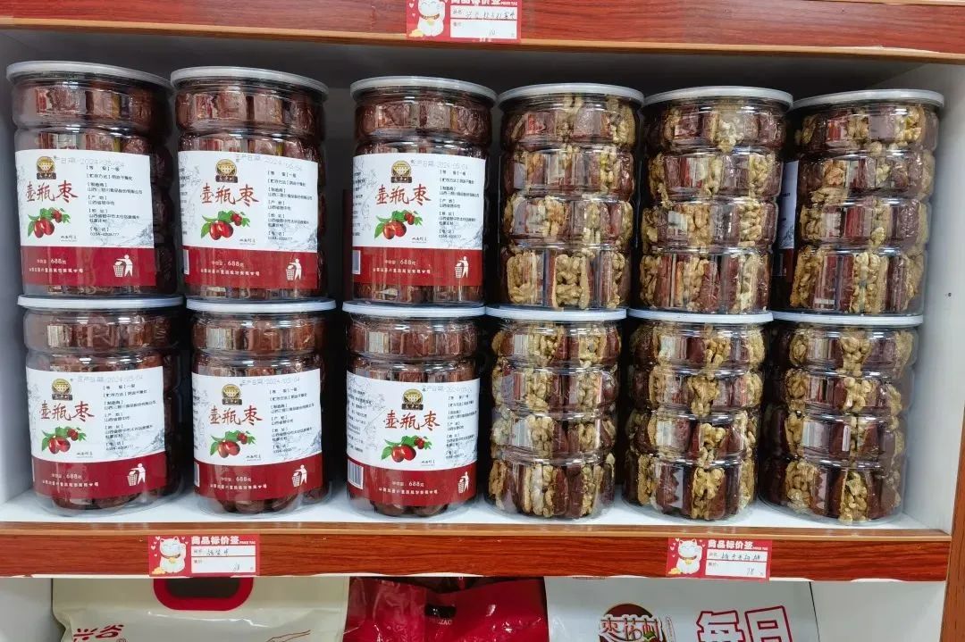 太谷地区的壶瓶枣,下大上小,中腰略细,形似红釉瓶。果实饱满,枣香浓郁,富含维生素C。做成干枣后,皮薄核小,味道更好。
