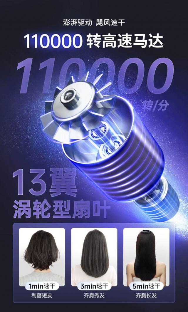 而且决定吹风速度的主要是风速,这个吹风速度为11万转风速,