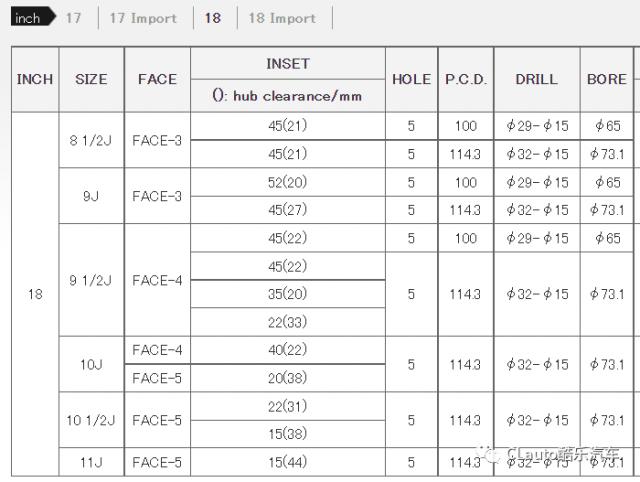 18 寸,从 8.5 到 11J 日本数据,包括 5*100 和 5*114.3,新老 86 和 BRZ 不用说,车型的前后匹配是很自然的。 JDM 最大的型号可以配得上 11J-ET15 这些数据,可谓相当夸张。