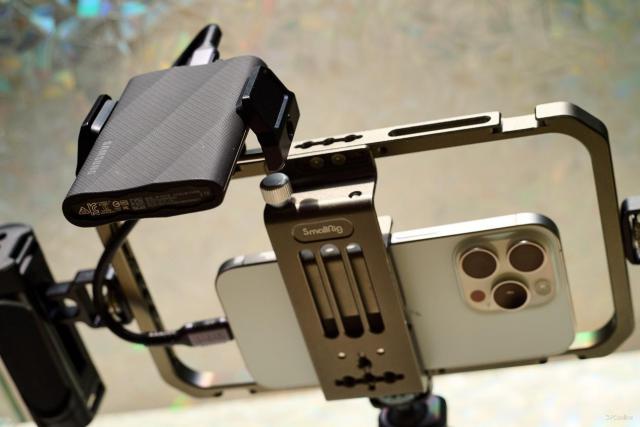 所以,有没有一种方法可以充分发挥苹果? ProRes 强大的录制功能,又能让用户随心所欲地进行创作,同时在专业上更进一步?今日,我们将带来一套创新的解决方案:将金属框架与三星顶级手机相结合 T9 移动式固态硬盘,创建真正意义上的 " 专业级 " 移动图像拍摄系统。这种组合不仅可以解决存储问题,而且可以为每个人创建移动图像提供更多的可能性。