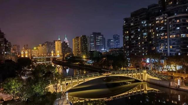 从梦清园出发,走几百米就可以看到拥挤的昌化路桥,这是观赏苏州河夜景的最佳场所。