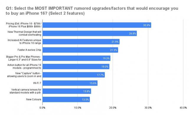 美国 iPhone 用户调查:价格和散热升级 16 这一系列最关心的因素