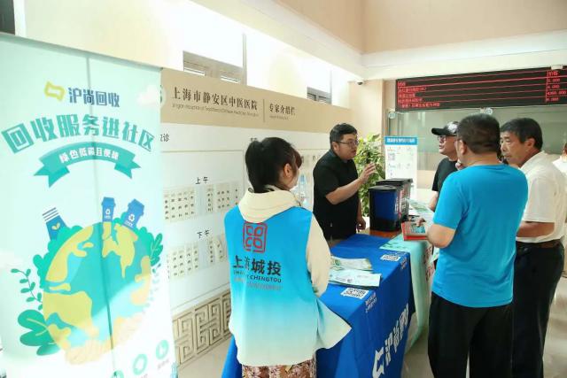 活动期间,垃圾分类志愿者介绍了垃圾分类的重要性和日常分类方法,特别是奶茶和奶茶外杯托的精细分类,为静安区中医院的医务工作者和就医、工作的居民。