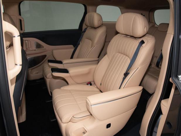 就座椅布局而言,新梦想家选择 2 2 3 式的 7 座椅布置,前两排座椅均支持加热,通风,记忆,10, 点击按摩功能,中央扶手箱内部为容量 13 升降车载冷热冰箱,也可以在后排打开;第二排配备零重力座椅,配置一键零重力支持方式 4 调整腿托;第三排座椅支持电动调节(靠背角度、座椅前后位置)和加热,并能 4/6 翻转放下,可以满足不同车辆场景的需要。