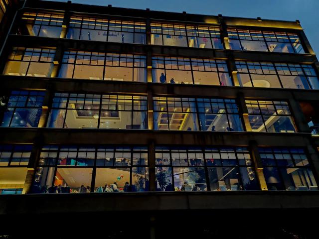 除夕夜,小蕾和她的同学经过楼下的一家酒店。她幻想有一天她可以和家人坐在一起,一起点香槟庆祝。(图 / 受访者提供)