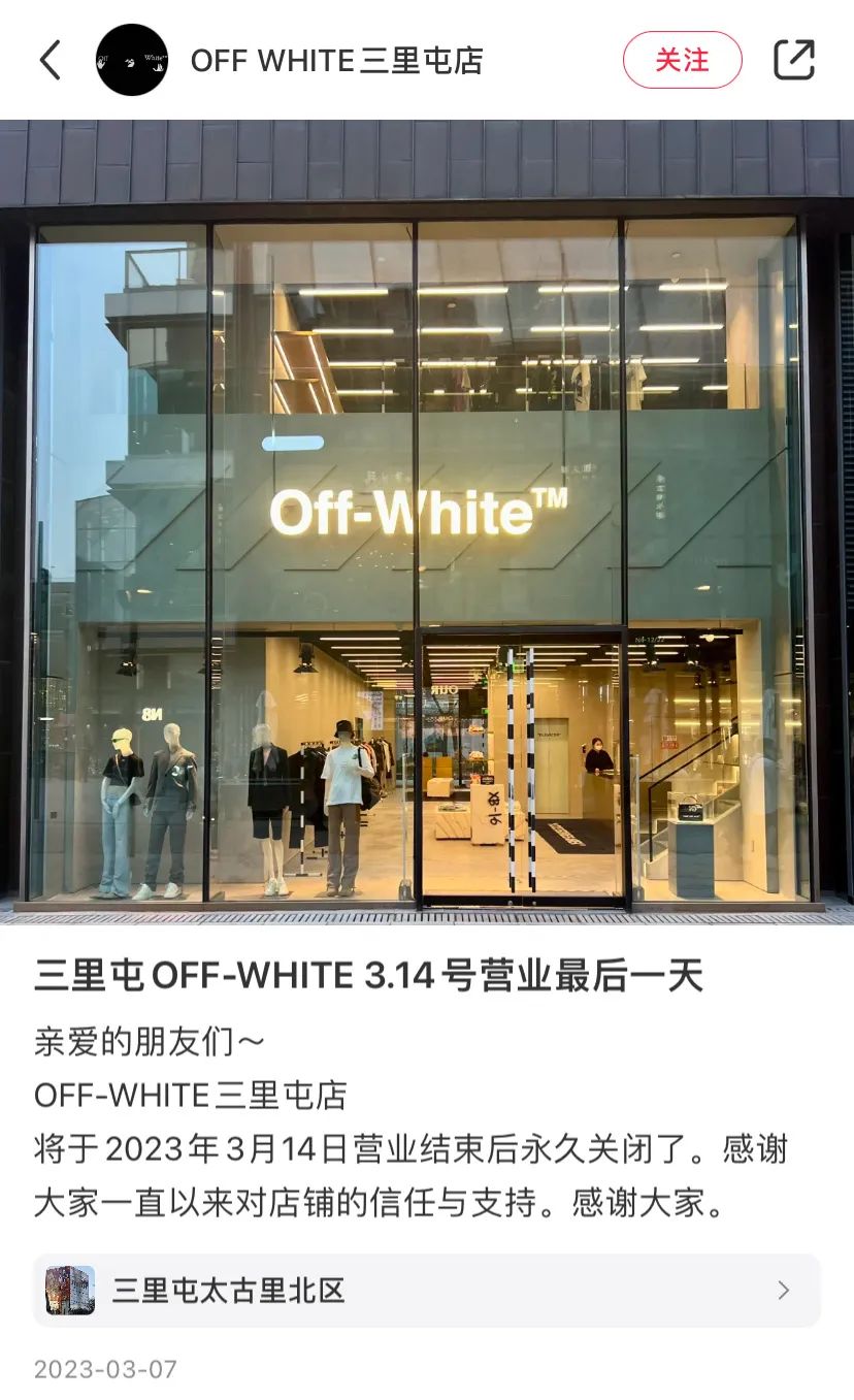 2020年被VF集团收购后,曾经在“娱乐圈一半都穿”的Supreme最近被VF集团以15亿美元再次销售,价格缩水近30%。结合街头美感和高端时尚的Off-White,曾经创造了四年销量增长21倍的业绩神话,现在势头不如以前了。近两年,北京、上海、成都、西安等地的门店被关闭。