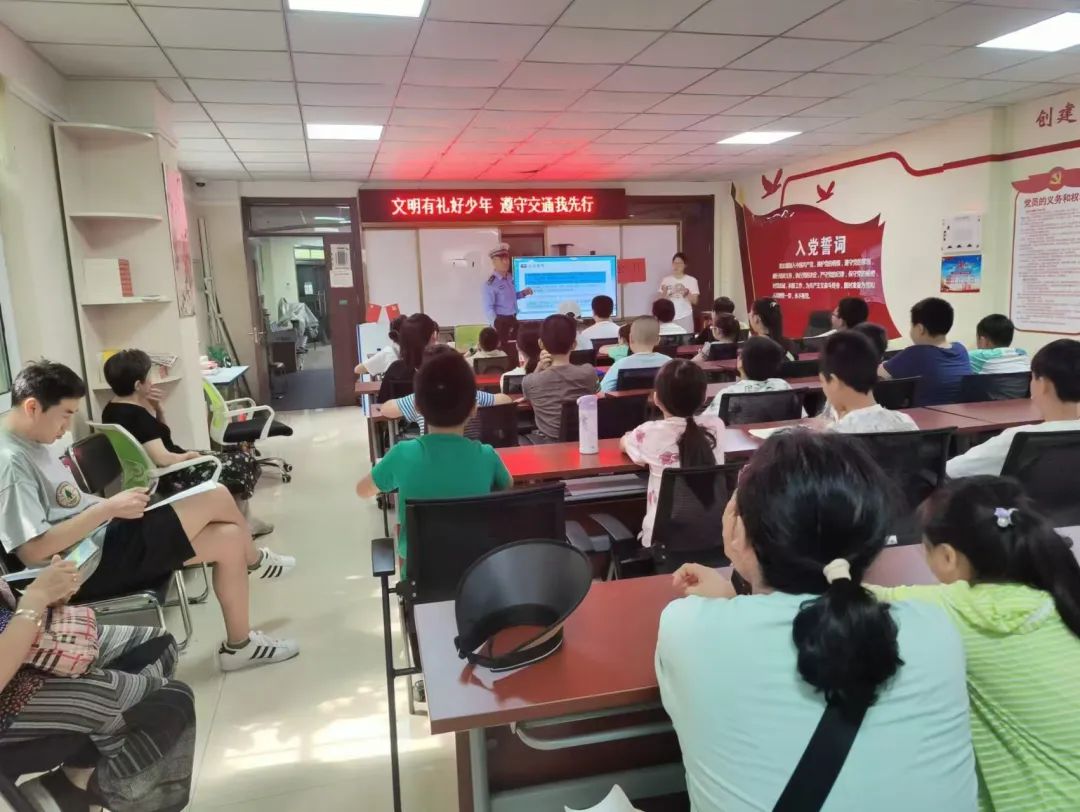 暑假即将结束。交警河东支队六纬路大队在深化推进“争当文明礼貌天津人”活动中,继续与社区联合开展交通安全宣传活动,为在家度假的中小学生开设交通安全课程,增强儿童交通安全意识,确保他们能够在步行、骑自行车、骑自行车的过程中遵守交通法规,鼓励他们通过“小手大手”向家长传播交通安全知识。