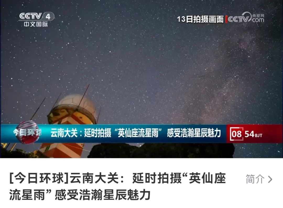 2024年8月18日,中央广播电视总台cctv13《朝闻天下》、CCTV4《今日环球》播出新闻《云南价格》 推迟拍摄“英仙座流星雨” 感受浩瀚星辰的魅力。