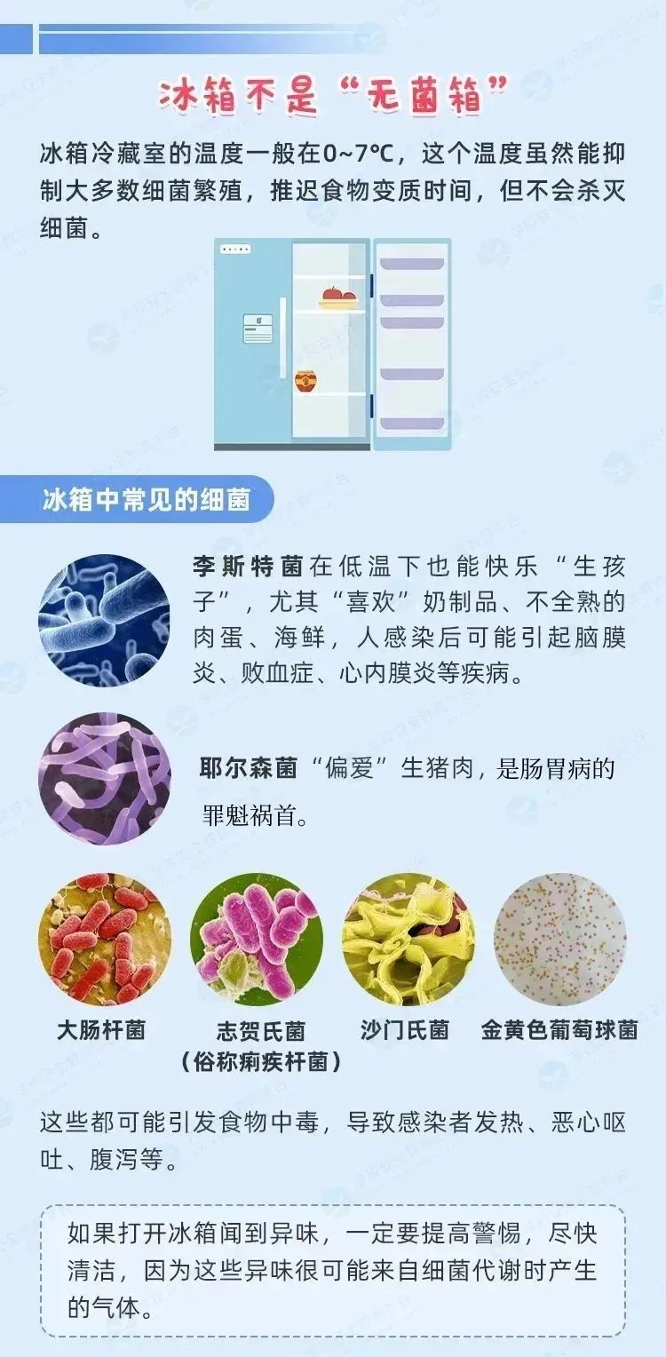 如果这些细菌随食物进入胃肠道,可能会引起炎症,导致腹痛、腹泻、呕吐、发烧等一系列症状。俗称“冰箱胃肠炎”,医学上也叫“细菌性胃肠炎”。严重者可引起脓毒血症、多器官衰竭等疾病。