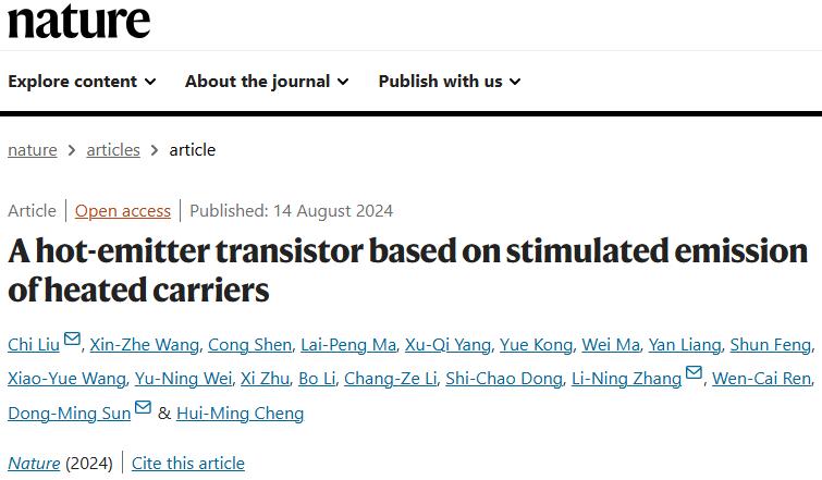 Liu, C., Wang, XZ., Shen, C. et al. A hot-emitter transistor based on stimulated emission of heated carriers. Nature (2024). https://doi.org/10.1038/s41586-024-07785-3