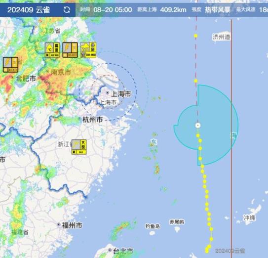 今年第9号台风“云雀”(热带风暴级),今天(8月20日)4点钟,中心位于离韩国济州南部约445公里的海面上,位于北纬29.6度,东经125.5度。中心气压998百帕,近中心最大风力8级(每秒18米)。目前,台风中心正以每小时30公里左右的速度向北移动,强度变化不大。预计今天上午至中午,“云雀”将经过上海人民广场同纬度,距离上海南汇嘴近300公里。由于“云雀”范围小,强度弱,结构不对称,风雨影响主要位于其东侧,估计对当地没有直接的风雨影响。