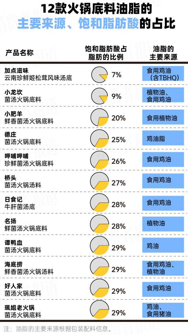 对12种火锅底料进行评估③:著名的饱和脂肪含量最高