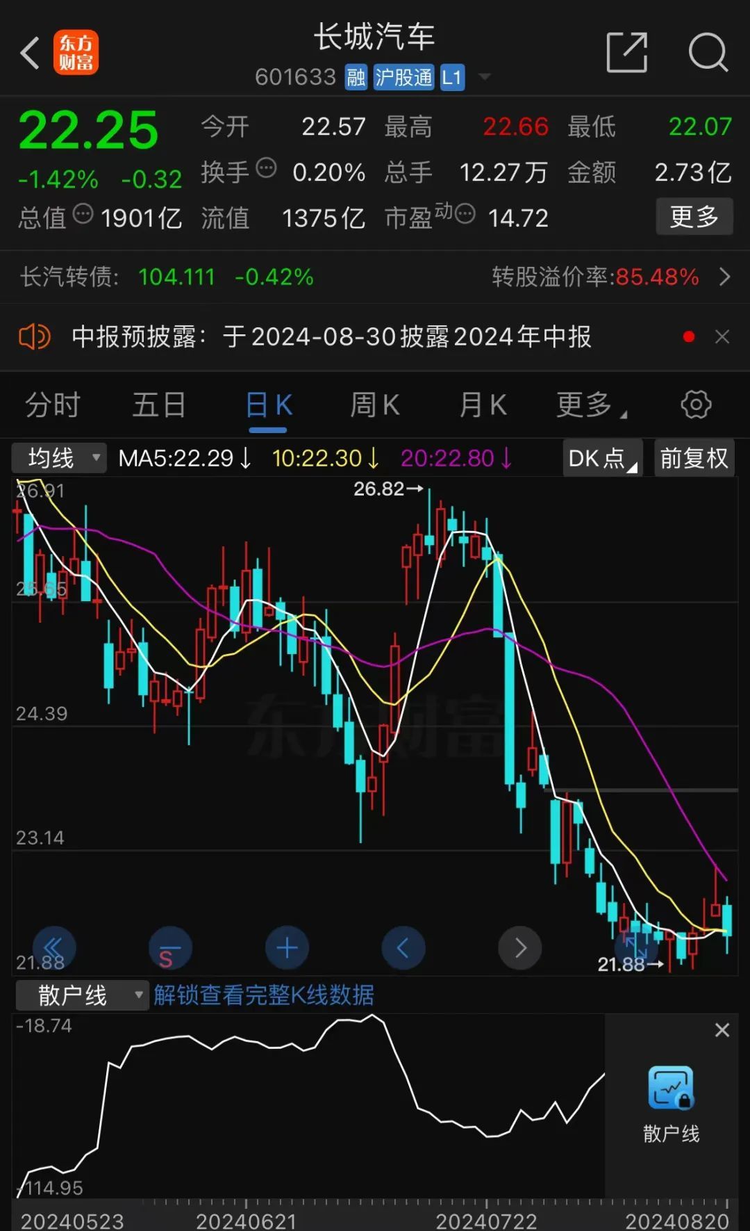刚刚,上海证券交易所发布了关于长城汽车舆论的监管信函。截至8月20日,长城汽车总市值为1901亿元。